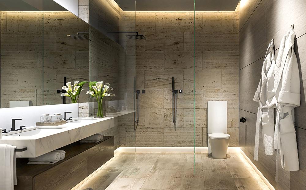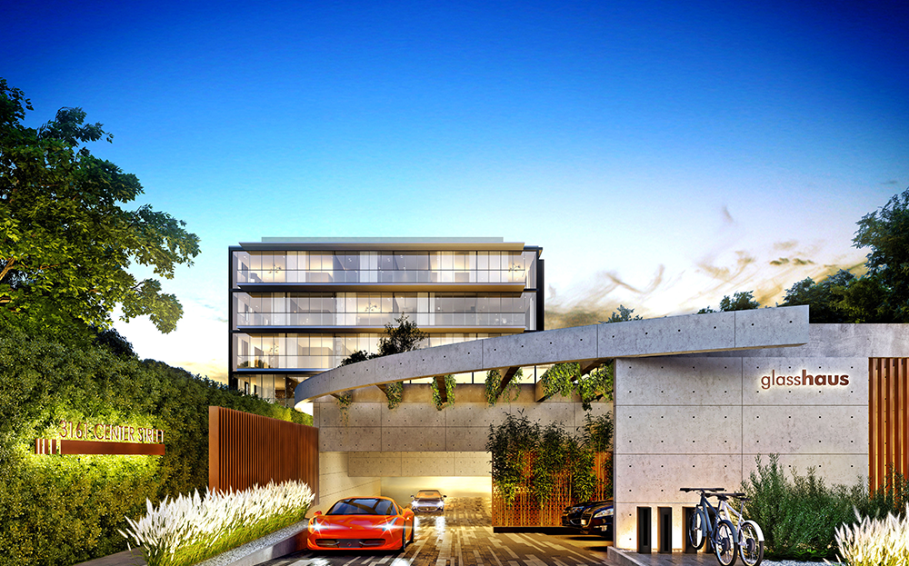 El interior de Glasshause es de estilo elegante que invita a la luz natural. La entrada para visitantes y el vestíbulo es creado en piedra texturizada, pulida madera, acero bruñido y vidrio panorámico. Afuera de su vestíbulo se encuentra un tranquilo jardín privado.