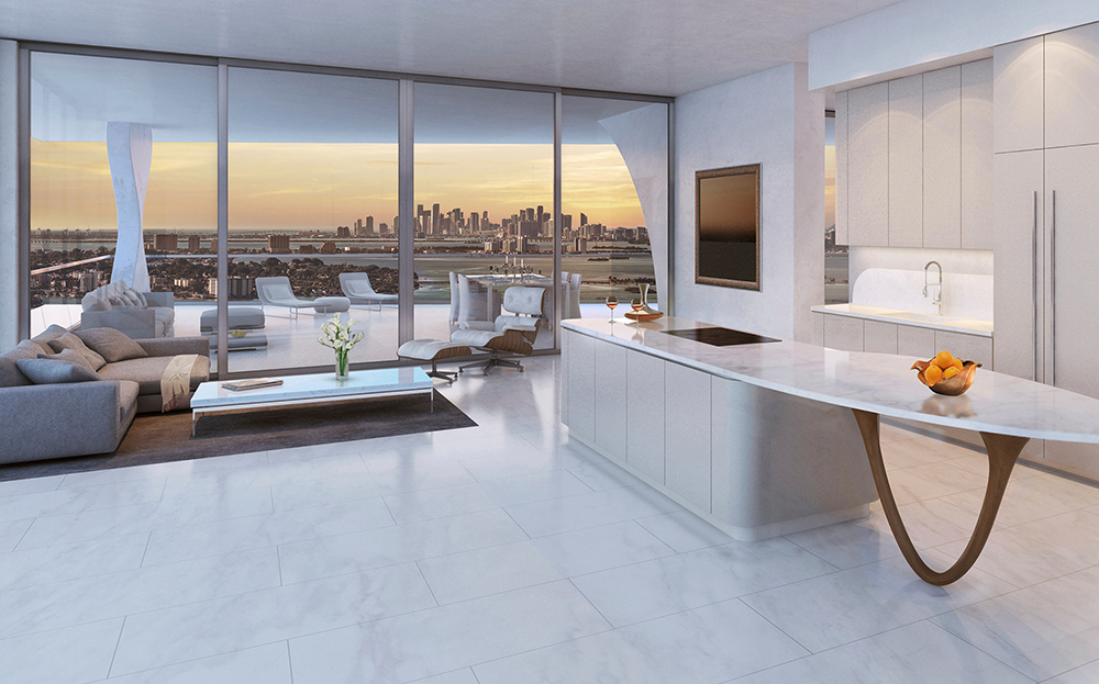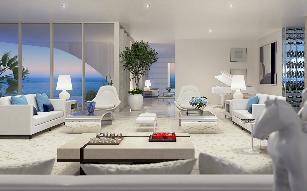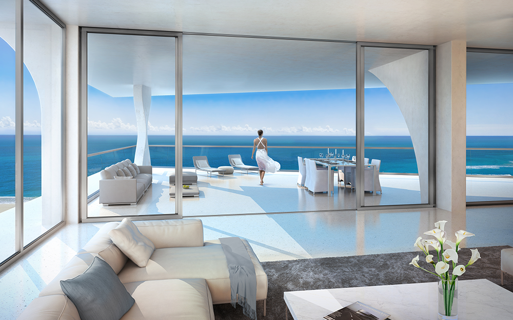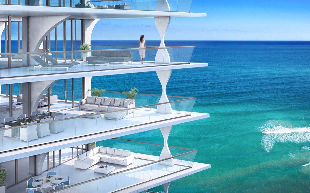El diseño de cada residencia está dedicado a la magia de la vida interior y exterior. Cada nivel de esta torre elegante y cónica tiene elevadas ventanas de piso a techo que enmarcan los horizontes atlántico e intracostero. Todas estas características especiales, más los lujos incorporados en sus residencias hacen de cada hogar contemporáneo en el cielo una gran declaración en la vida de lujo frente al mar.
